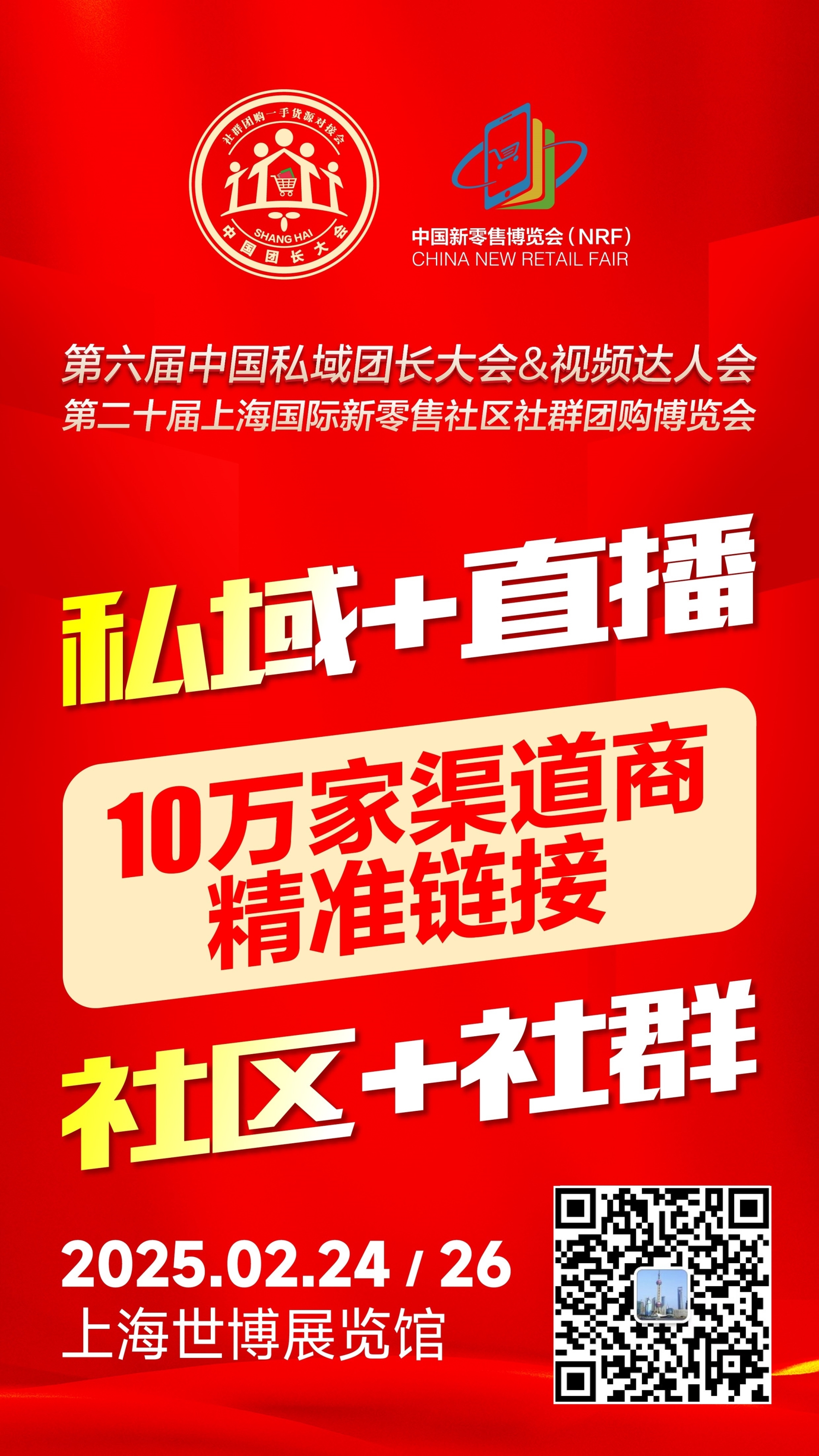 第六届中国私域团长大会&视频达人会暨第二十届上海国际新零售社区社群团购博览会将于2025年2月24-26日在上海世博展览馆继续举办。