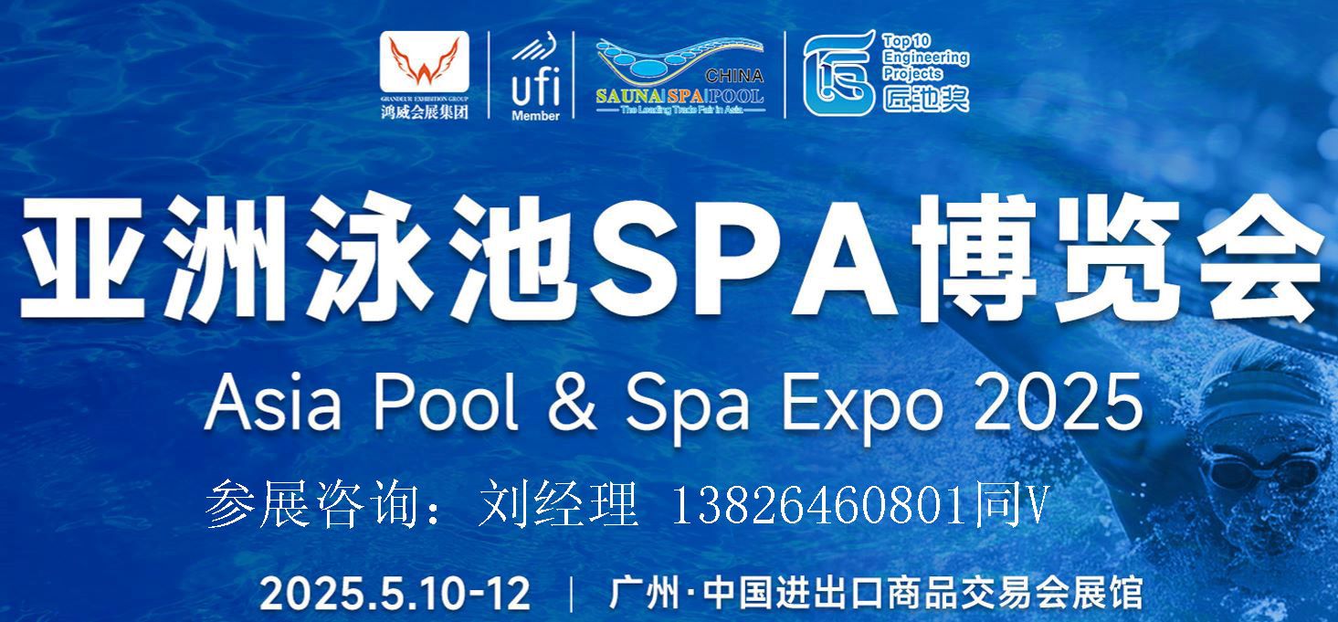 2025广州泳池展|2025第20届亚洲泳池SPA博览会|广州泳池设备用品展会 ASIA POOL & SPA EXPO 2025 组委会咨询:刘经理138 2646 0801 同V 展会日期:2025年5月10日-12日 展会地点:广州-中国进出口商品交易展馆 主办单位:广东省沐浴休闲协会 广东省水处理技术协会 广东鸿威国际会展集团 承办单位:广东鸿威国际会展集团 支持机构:欧洲水疗协会 世界温泉及气候养生联合会 马来西亚泳池协会 斯洛文尼亚水疗协会