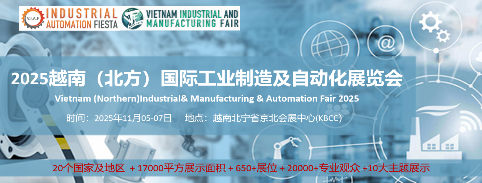 上届共计20个国家及地区,17000平方展示面积,650+展位,490+展商,16000+专业观众,20+国内外工业领域专家参与,共享的工业盛宴。VIAF&VIMF也是众多国际工业技术品牌固定参加的工业展会。